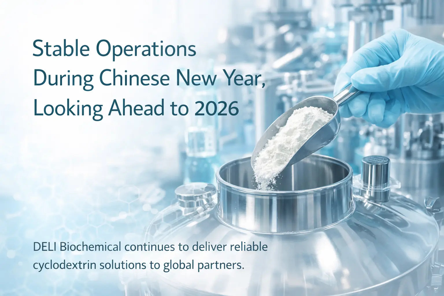 ในช่วงวันหยุดตรุษจีนที่ผ่านมา DELI Biochemical รักษาการดำเนินงานที่มั่นคงและอุปทานที่เชื่อถือได้ ผ่านการวางแผนอย่างรอบคอบและการจัดการการผลิตอย่างมีความรับผิดชอบ ตอกย้ำความมุ่งมั่นในด้านคุณภาพ ความปลอดภัย และความร่วมมือระยะยาวในขณะที่บริษัทก้าวเข้าสู่ปี 2569