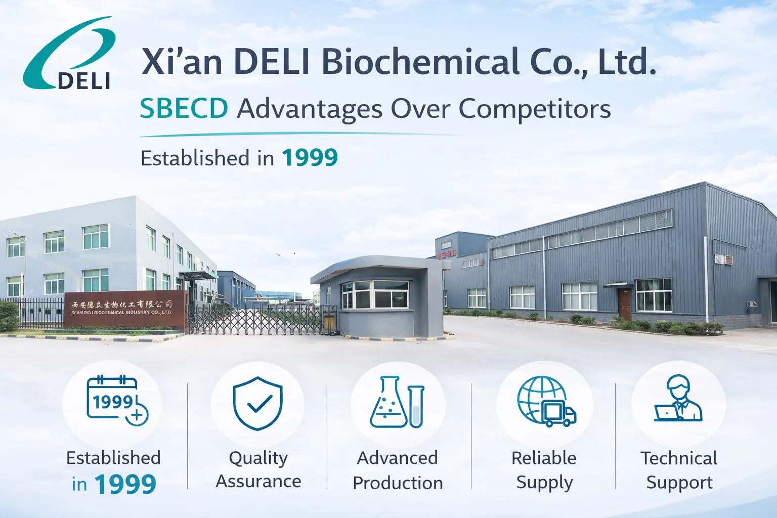DELI Biochemical เป็นหนึ่งในบริษัทที่ใหญ่ที่สุดที่ผลิต Betadex Sulfobutyl Ether Sodium พวกเขาสร้างส่วนผสมเกรดฉีดที่ตรงตามมาตรฐานยาที่เข้มงวดที่สุด เราเป็นพันธมิตรที่ดีที่สุดในการพัฒนายาใหม่ๆ เพราะเราใส่ใจในคุณภาพ ความน่าเชื่อถือ และความพึงพอใจของลูกค้า คุณสามารถได้รับประโยชน์จาก DELI ผ่านความช่วยเหลือทางเทคนิคเต็มรูปแบบของเราและรับประกันความน่าเชื่อถือในการจัดหา ติดต่อเราที่ xadl@xadl.com เพื่อหารือเกี่ยวกับความต้องการด้านการกำหนดสูตรเฉพาะของคุณ
